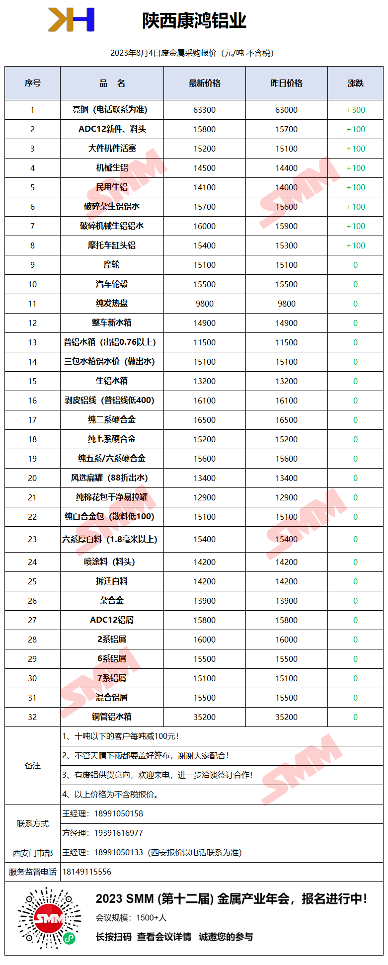 8月4日陕西康鸿 废金属采购报价