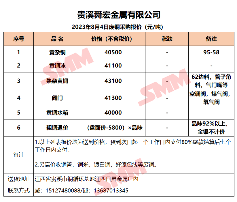 今日贵溪舜宏金属有限公司 ,废铜采购报价已更新,有货的朋友欢迎联系我们!