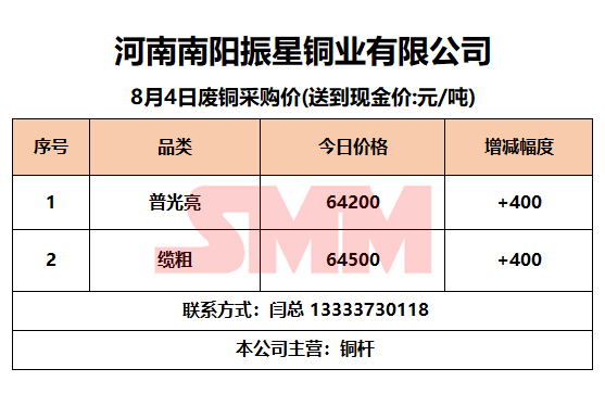 8月4日南阳振星 废铜采购报价