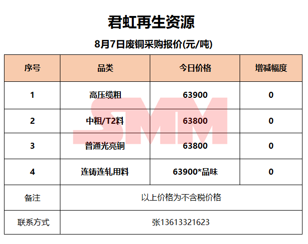 8月7日君虹再生资源 废铜收购报价