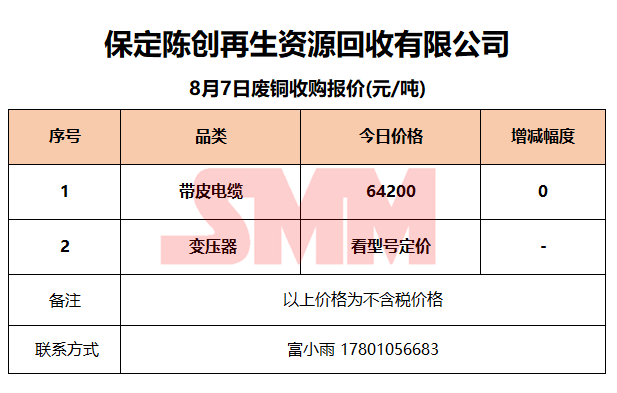 8月7日保定陈创 废金属收购报价