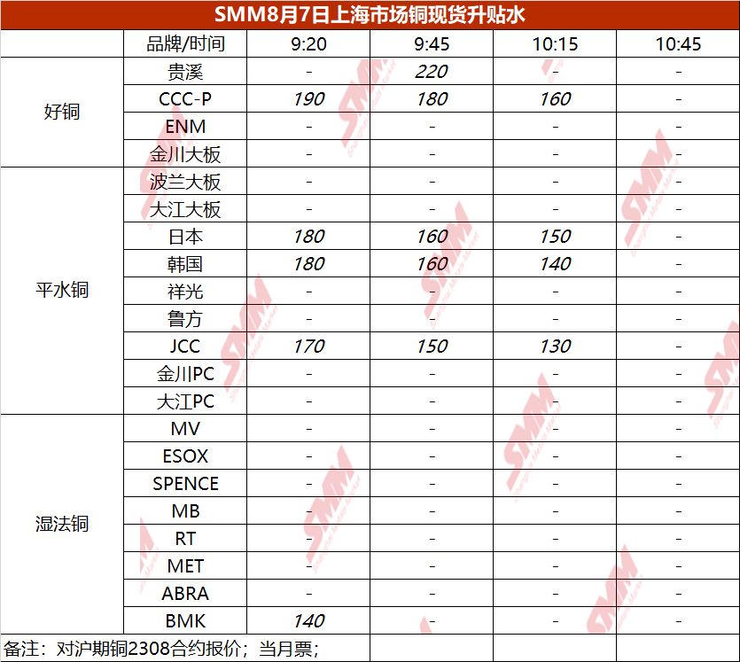 8月7日上海市场铜现货升贴水(第三时段)【SMM价格】