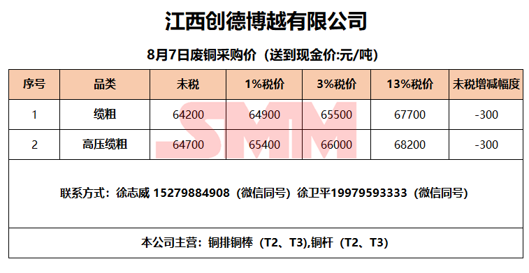 今日江西创德博越,废铜采购报价已更新,有货的朋友欢迎联系我们!