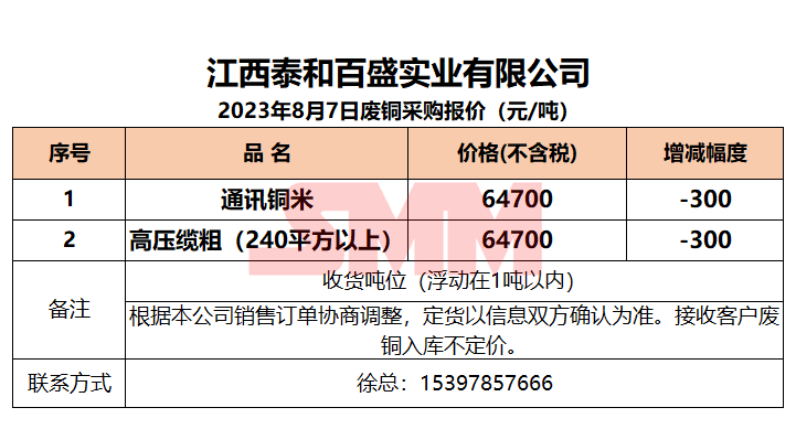 8月7日江西泰和 废铜采购报价