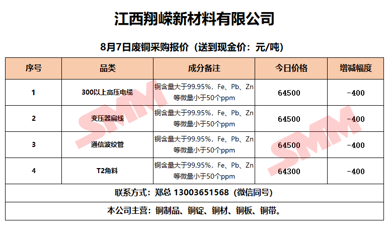 今日江西翔嵘新材料,废铜采购报价已更新,有货的朋友欢迎联系我们!