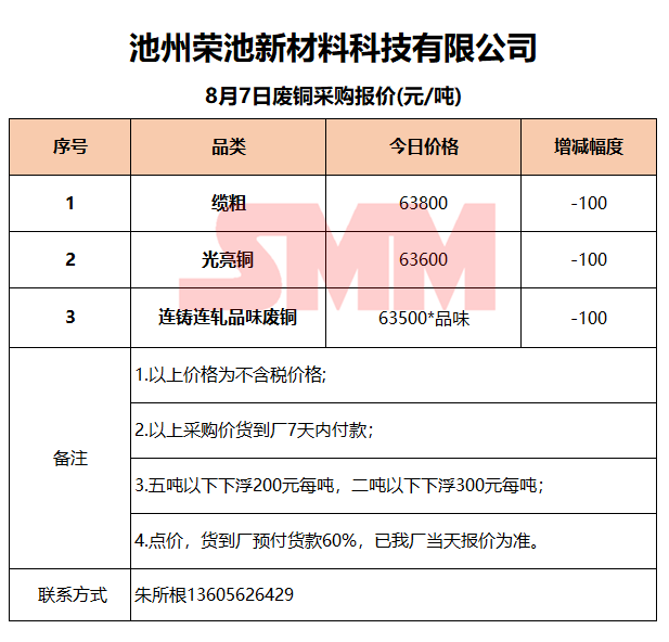今日池州荣池 废铜采购报价已更新,有货的朋友欢迎联系我们!