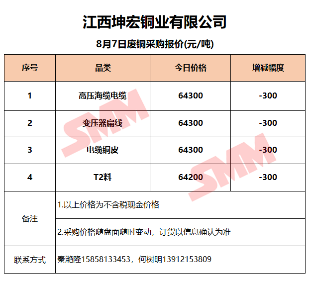 今日江西坤宏,废铜采购报价已更新,有货的朋友欢迎联系我们!