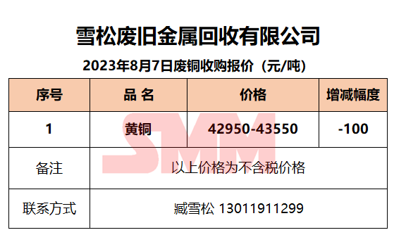 今日雪松废旧,废铜收购报价已更新,有货的朋友欢迎联系我们!