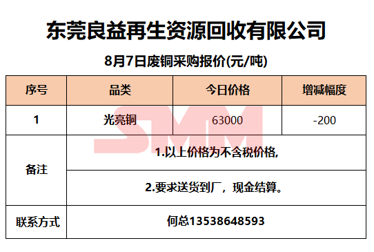 8月7日东莞良益 废铜采购报价