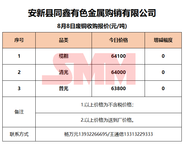 今日安新同鑫,废铜收购报价已更新,有货的朋友欢迎联系我们!
