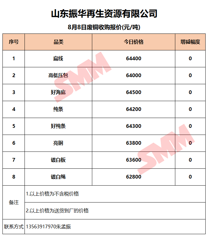 今日山东振华,废铜收购报价已更新,有货的朋友欢迎联系我们!