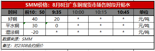 8月8日广东铜现货市场各时段升贴水(第一时段9:35)【SMM价格】