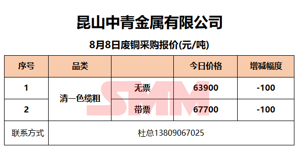 今日昆山中青金属 ,废铜采购报价已更新,有货的朋友欢迎联系我们!