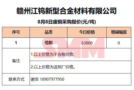 8月8日赣州江钨 废铜采购报价