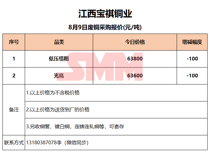 今日江西宝祺铜业 废铜采购报价已更新,有货的朋友欢迎联系我们!