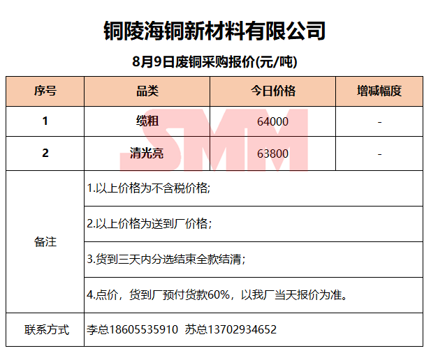 今日铜陵海铜,废铜采购报价已更新,有货的朋友欢迎联系我们!