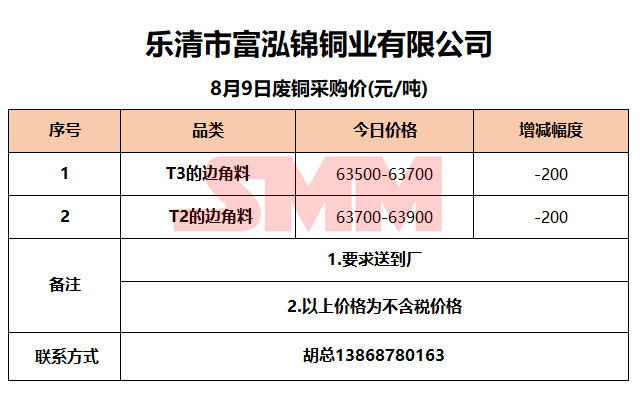 今日乐清富泓锦,废铜采购报价已更新,有货的朋友欢迎联系我们!