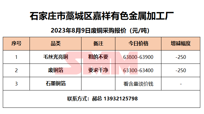今日嘉祥有色金属,废铜采购报价已更新,有货的朋友欢迎联系我们!