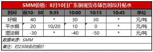 8月10日广东铜现货市场各时段升贴水(第三时段10:15)【SMM价格】