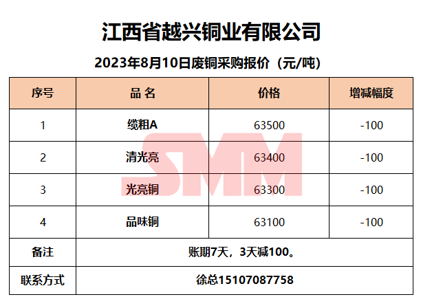 今日江西越兴,废铜采购报价已更新,有货的朋友欢迎联系我们!