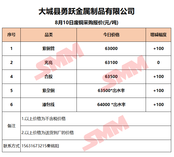 今日大城勇跃,废铜采购报价已更新,有货的朋友欢迎联系我们!