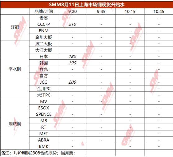 8月11日上海市场铜现货升贴水(第一时段)【SMM价格】