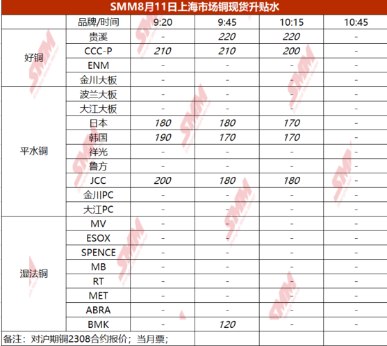 8月11日上海市场铜现货升贴水(第三时段)【SMM价格】