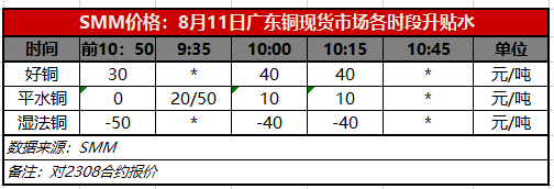 8月11日广东铜现货市场各时段升贴水(第三时段10:15)【SMM价格】