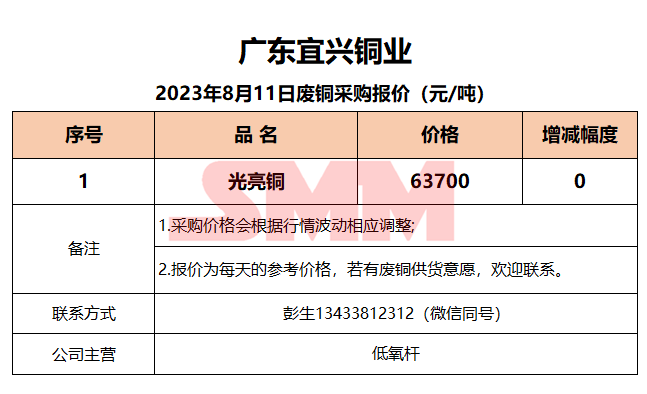 8月11日广东宜兴 废铜采购报价