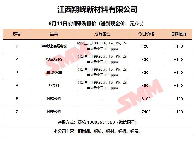 今日江西翔嵘新材料,废铜采购报价已更新,有货的朋友欢迎联系我们!