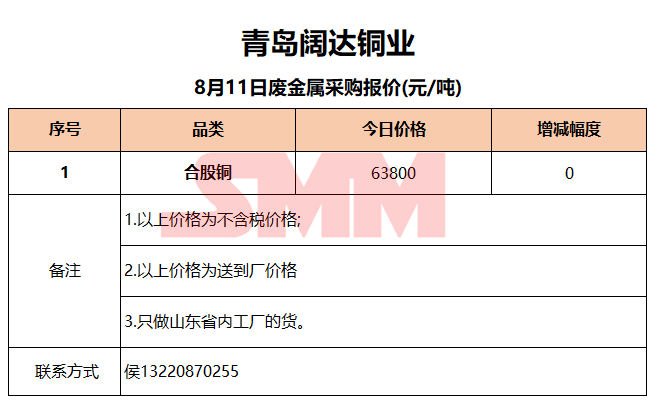 今日青岛阔达铜业 ,废金属采购报价已更新,有货的朋友欢迎联系我们!