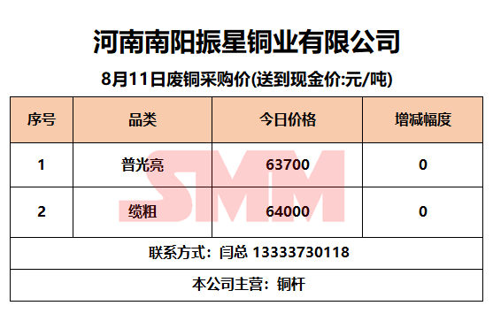 8月11日南阳振星 废铜采购报价