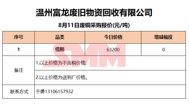 今日温州富龙废旧,废铜采购报价已更新,有货的朋友欢迎联系我们!