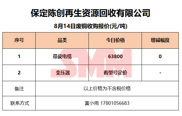今日保定陈创再生资源,废金属收购报价已更新,有货的朋友欢迎联系我们!