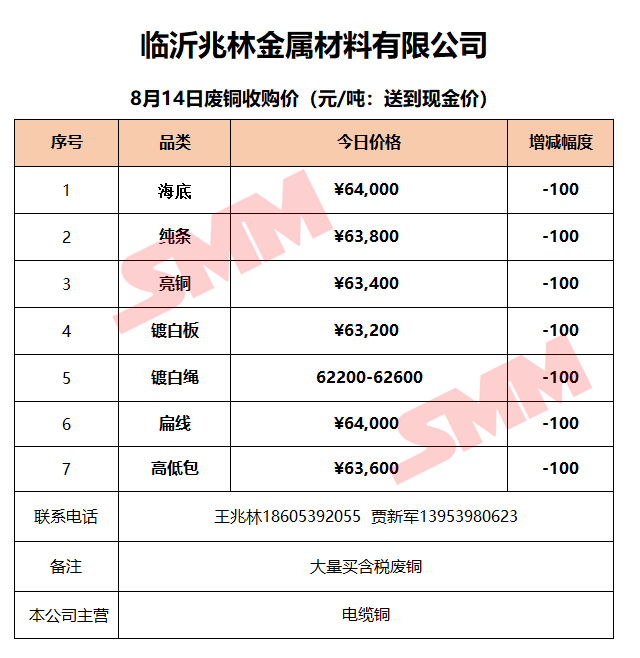 今日临沂兆林金属 ,废铜收购报价已更新,有货的朋友欢迎联系我们!
