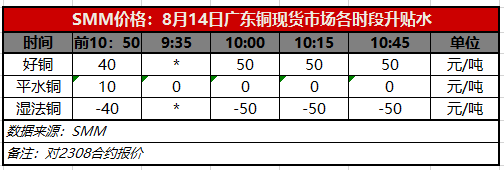 8月14日广东铜现货市场各时段升贴水(第四时段10:45)【SMM价格】