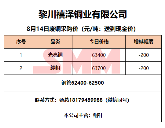 8月14日黎川禧泽铜业 废铜采购报价