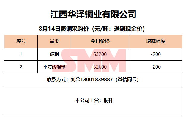 8月14日江西华泽铜业 废铜采购报价