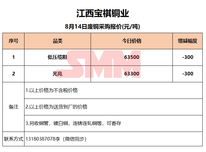 8月14日江西宝祺 废铜采购报价