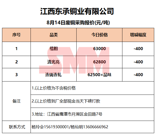 今日江西东承铜业/博升铜业 废铜采购报价已更新,有货的朋友欢迎联系我们!