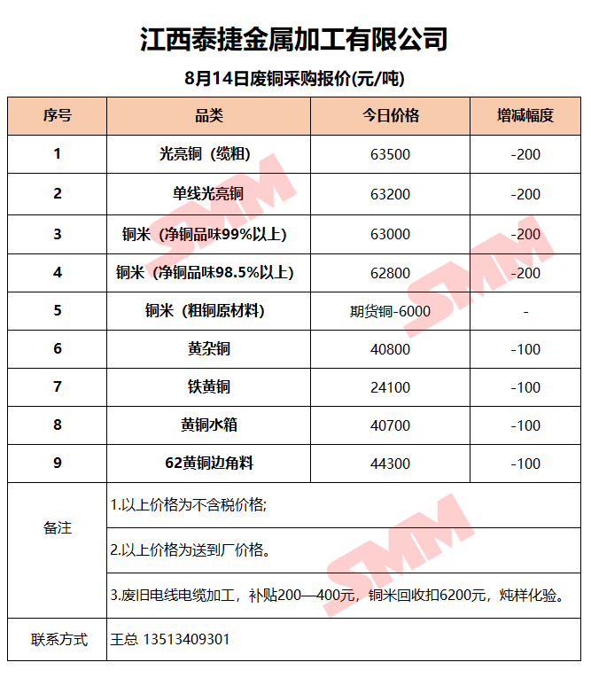 今日江西泰捷,废铜采购报价已更新,有货的朋友欢迎联系我们!