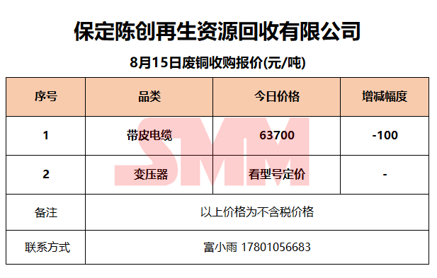 今日保定陈创再生资源,废金属收购报价已更新,有货的朋友欢迎联系我们!