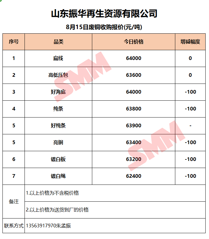 今日山东振华,废铜收购报价已更新,有货的朋友欢迎联系我们!