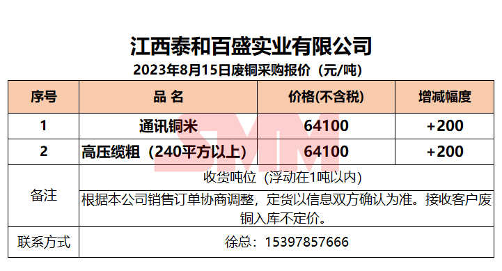 今日江西泰和百盛实业 ,废铜采购报价已更新,有货的朋友欢迎联系我们!