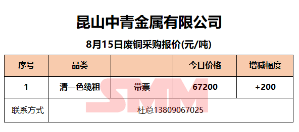 8月15日昆山中青 废铜采购报价