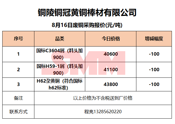 8月16日铜陵铜冠 废铜采购报价