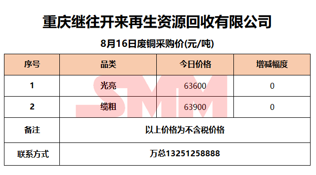 8月16日重庆继往开来 废铜采购报价