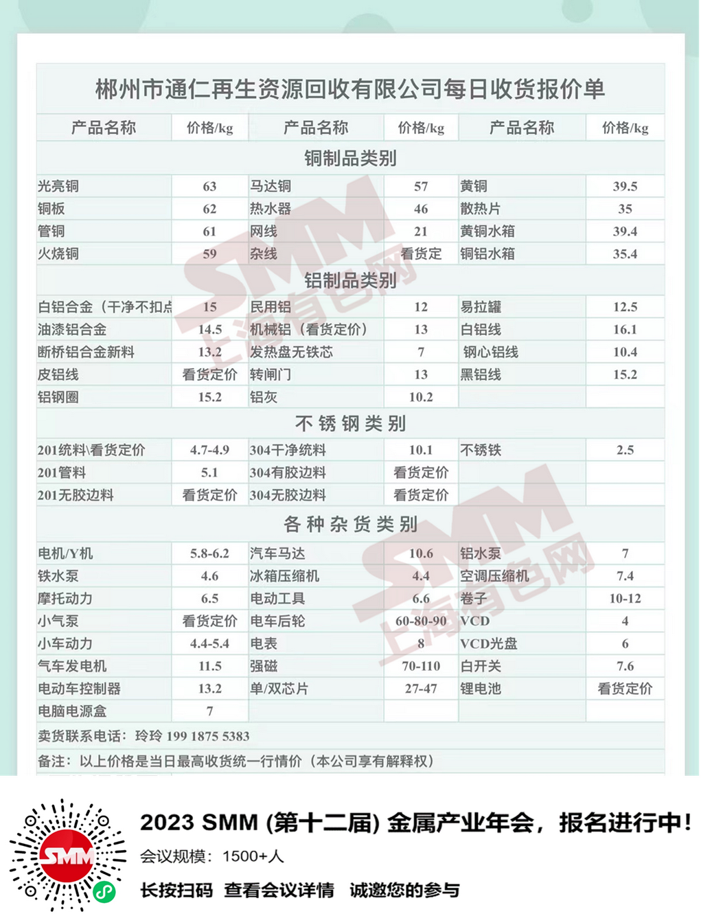 今日郴州市通仁再生资源回收有限公司 废金属收购报价已更新,有货的朋友欢迎联系我们!