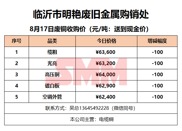 8月17日临沂明艳废旧金属 废铜收购报价