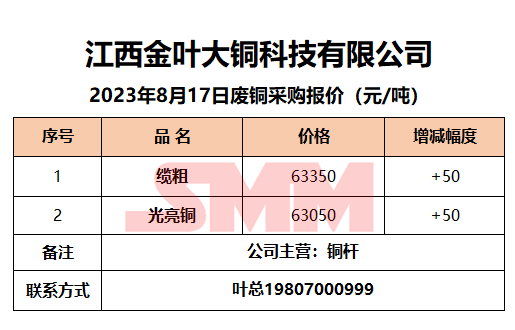 8月17日江西金叶大铜 废铜采购报价